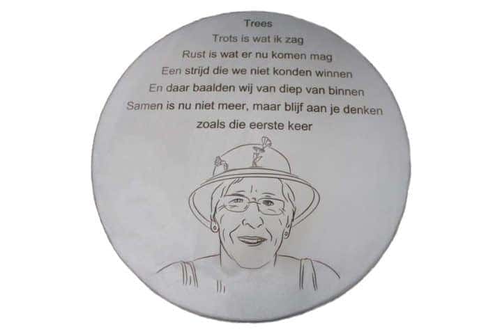 Na een overlijden bijvoorbeeld willen nabestaanden vaak een foto van de overledene op een gedenkplaat. Dat kan prima, maar soms staat een zieke of oudere niet zo florissant op foto’s uit de laatste periode. Dan kun je beter een goede foto van een paar jaar eerder gebruiken.