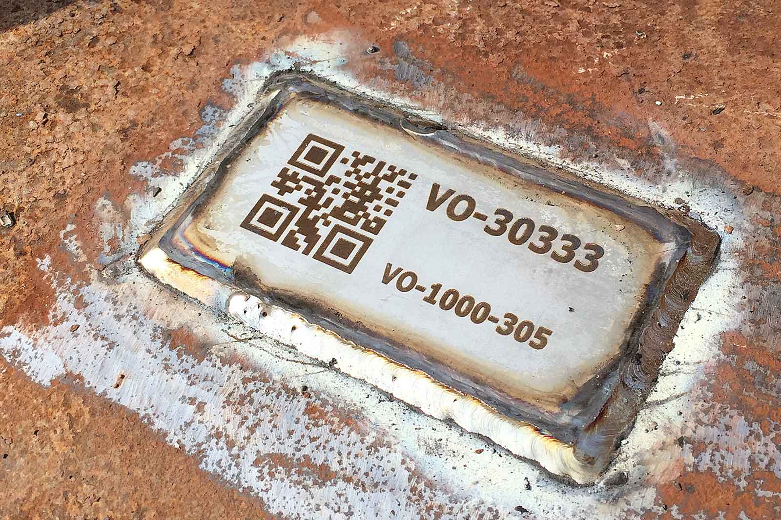 Een QR-code graveren op een industrieel plaatje voor de installatie bouw.