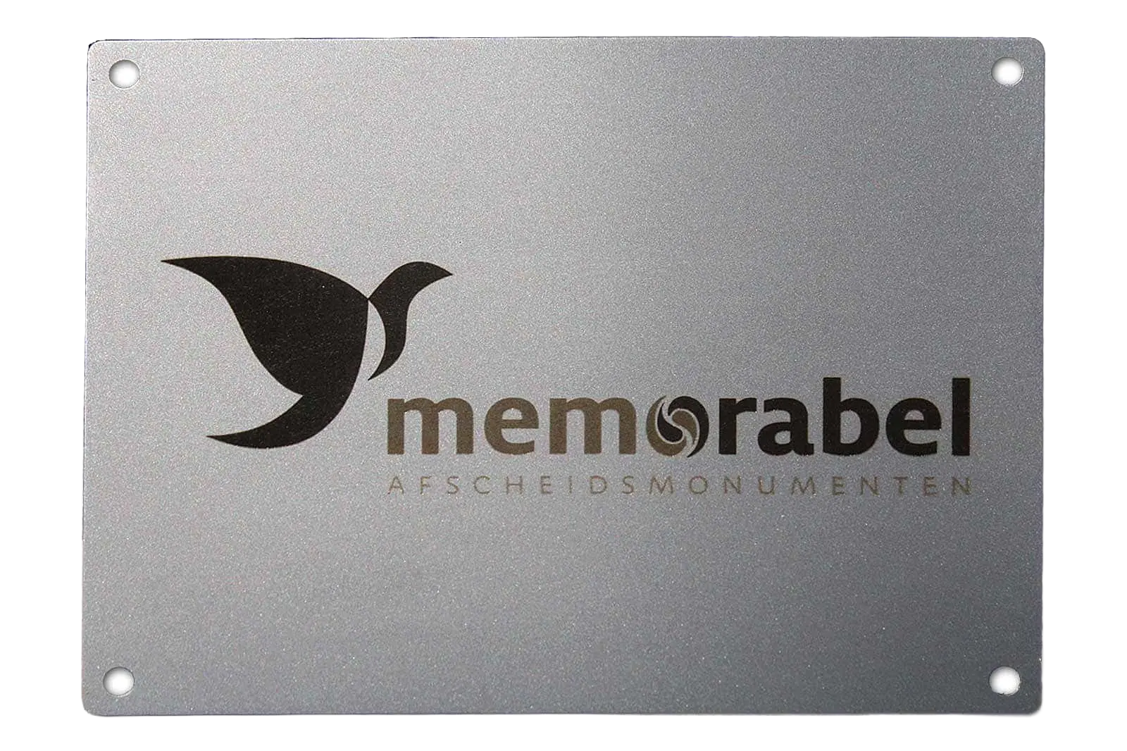logo Memorabel aangebracht op een RVS herdenkingsplaat